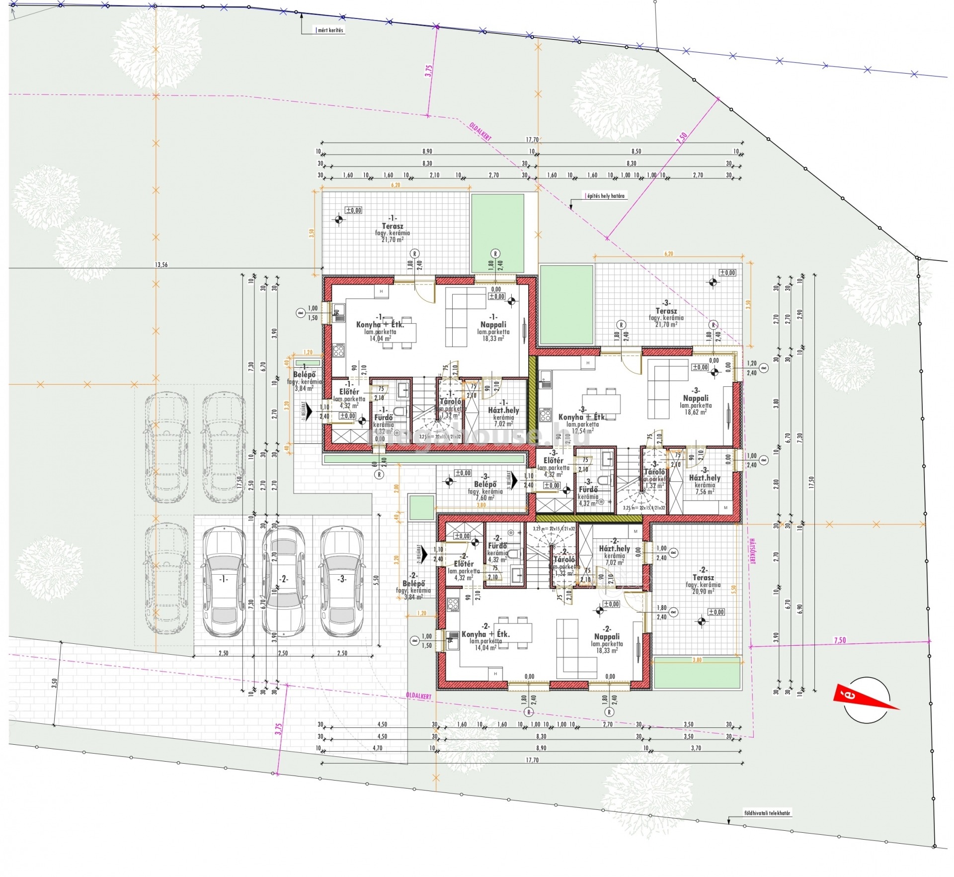 Lakótér nettó: 102 nm + 20nm terasz + 12nm erkély + 250nm sajár kert.