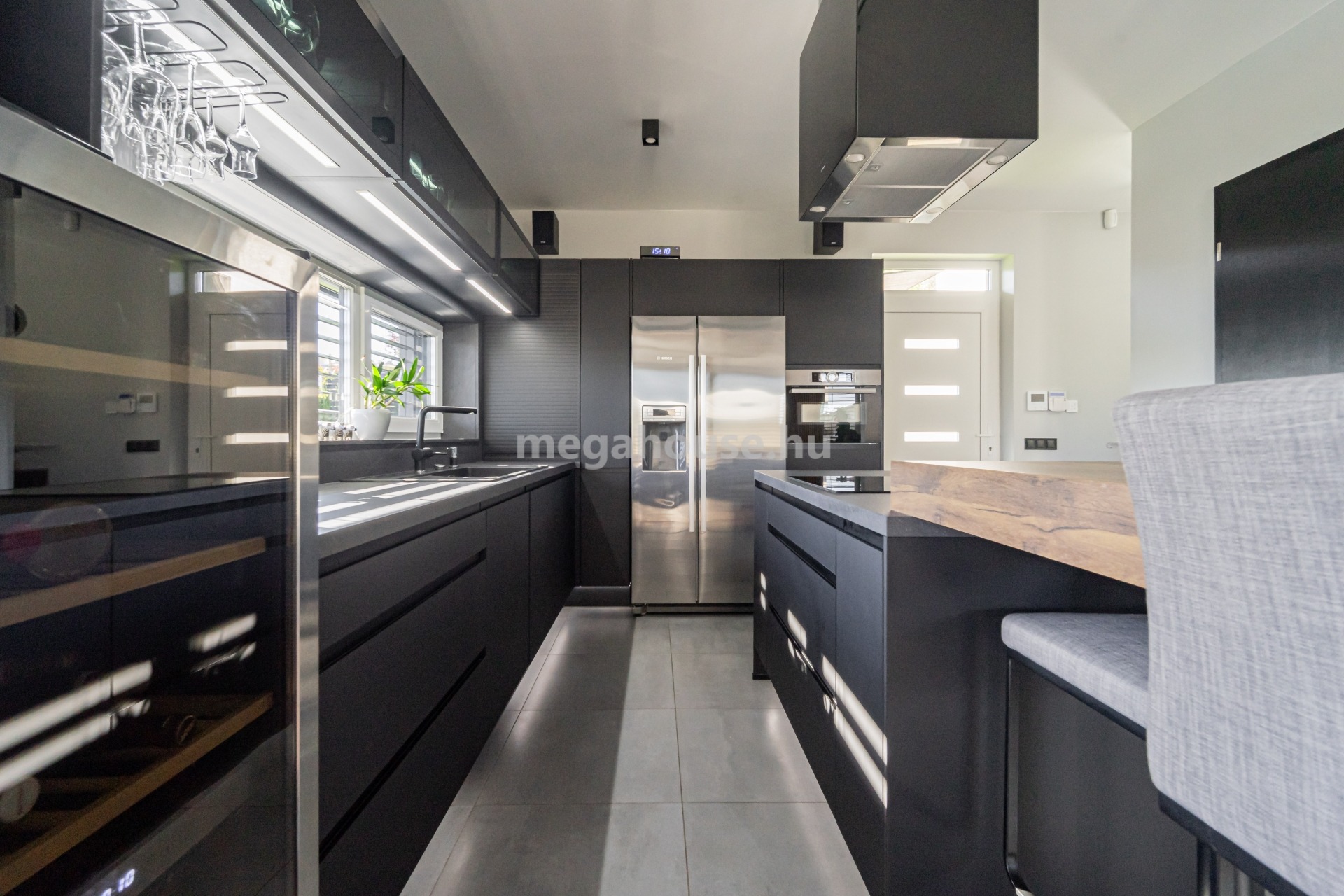 Az ingatlan konyhaszigettel rendelkező konyhája extra minőségű, NOLTE márkájú, eredeti német, ujjlenyomat mentes anyagú konyhabútorral és Bosch gépekkel felszerelt.