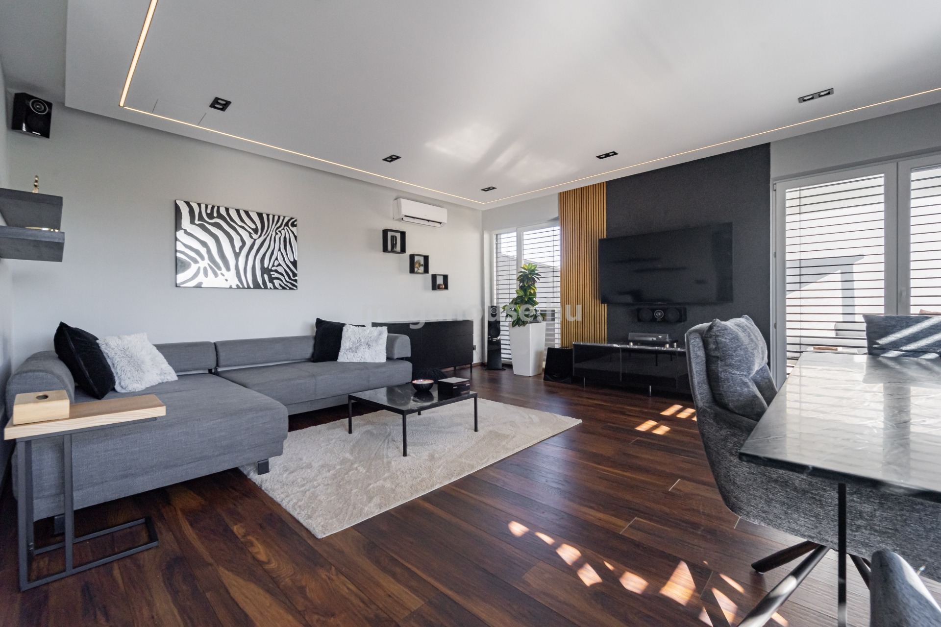 Az ingatlan fűtéséről és melegvíz ellátásáról Fujitsu hűtő-fűtő hőszivattyú rendszer felel, elektromos okos padlófűtéssel és Ariston melegvíz tárolóval kiegészülve.