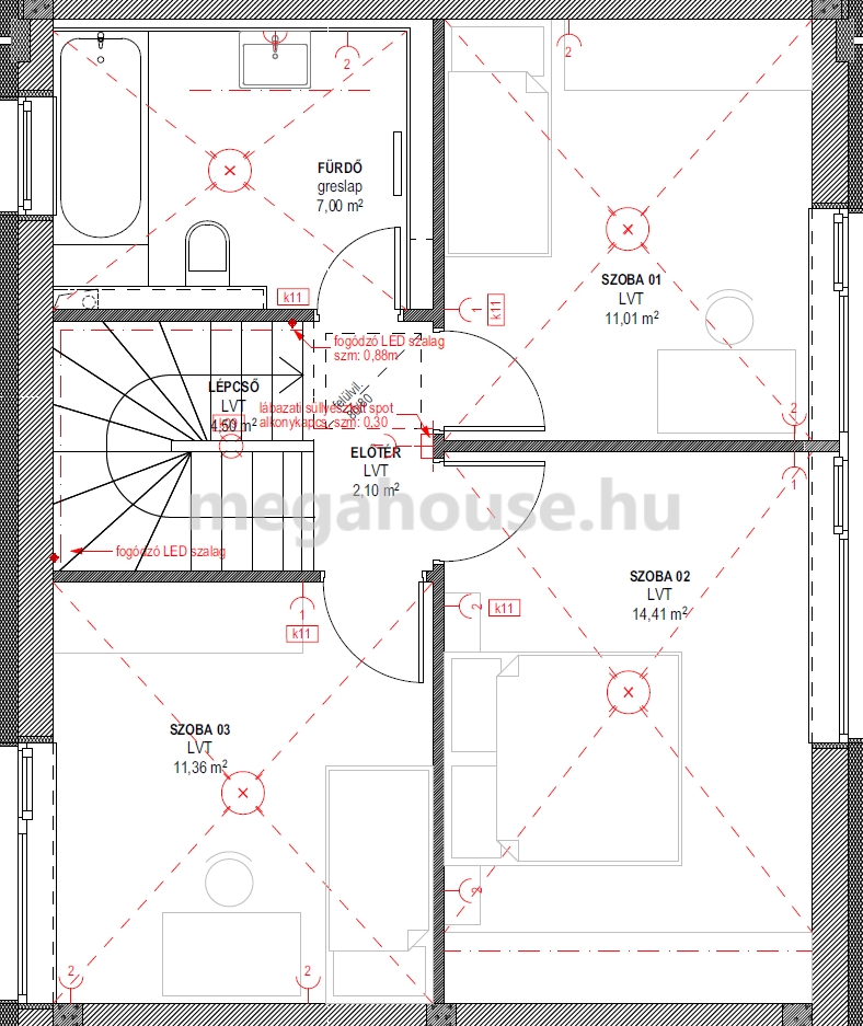EMELET: 3 különnyíló napfényes, panorámás hálószoba, és egy fürdőszoba káddal.