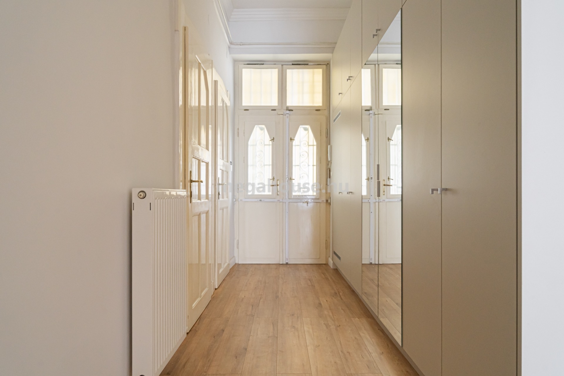 A különleges eredeti ajtókat aprólékos munkával dolgozták meg, hogy a modernizált polgári formájukat megkapják.